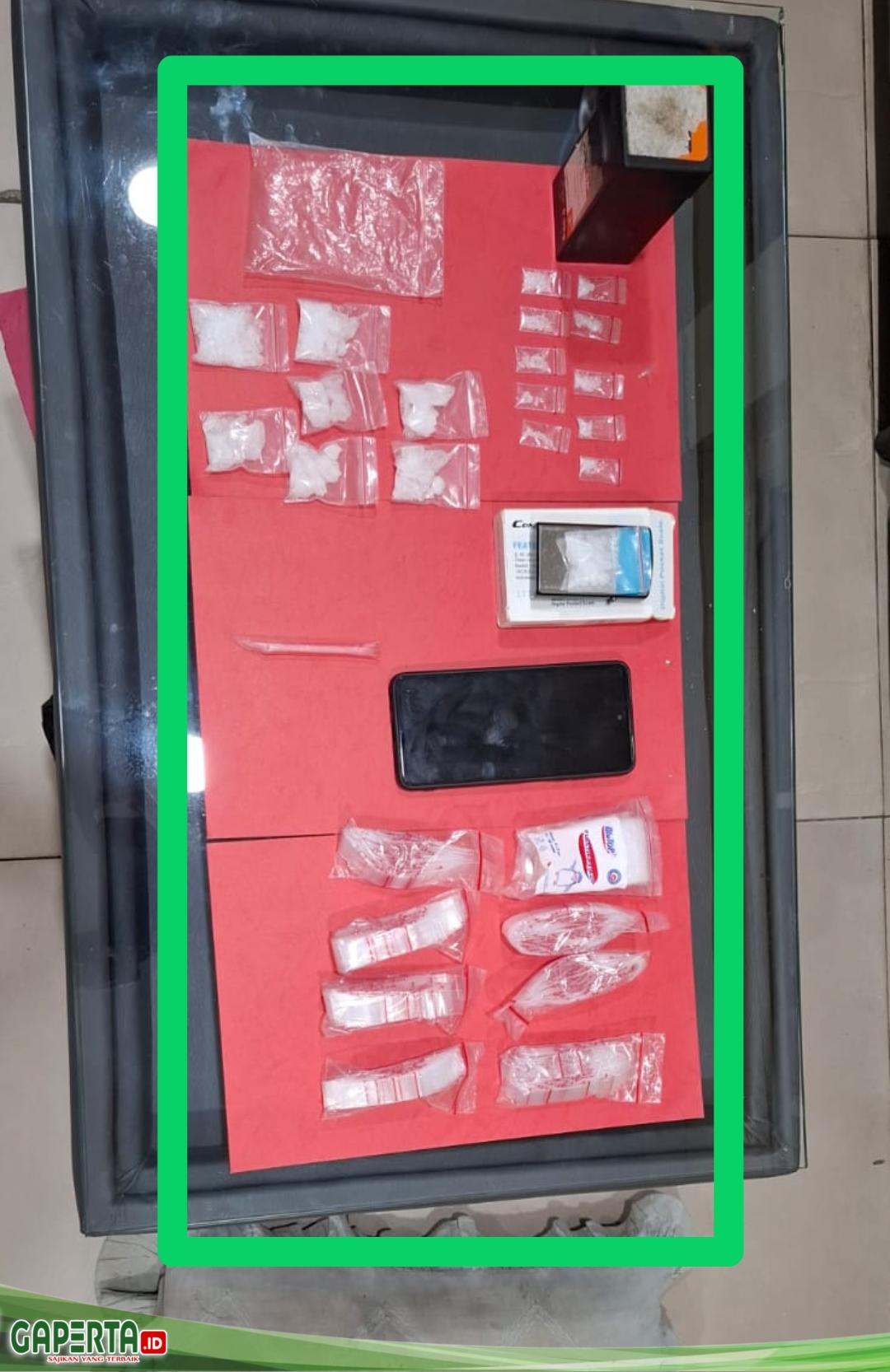 Dari tangan tersangka, polisi berhasil mengamankan barang bukti berupa 18 paket diduga narkotika jenis sabu dengan berat kotor mencapai 44,30 gram yang disembunyikan di tempat-tempat tak terduga.
