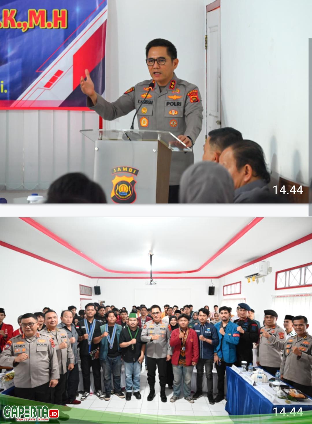 Dalam sambutannya, Kapolda Jambi Irjen Pol Krisno H. Siregar menyampaikan apresiasi dan rasa terima kasih kepada para mahasiswa yang hadir, serta menegaskan pentingnya peran generasi muda dalam menjaga keamanan dan membawa perubahan positif bagi Provinsi Jambi.