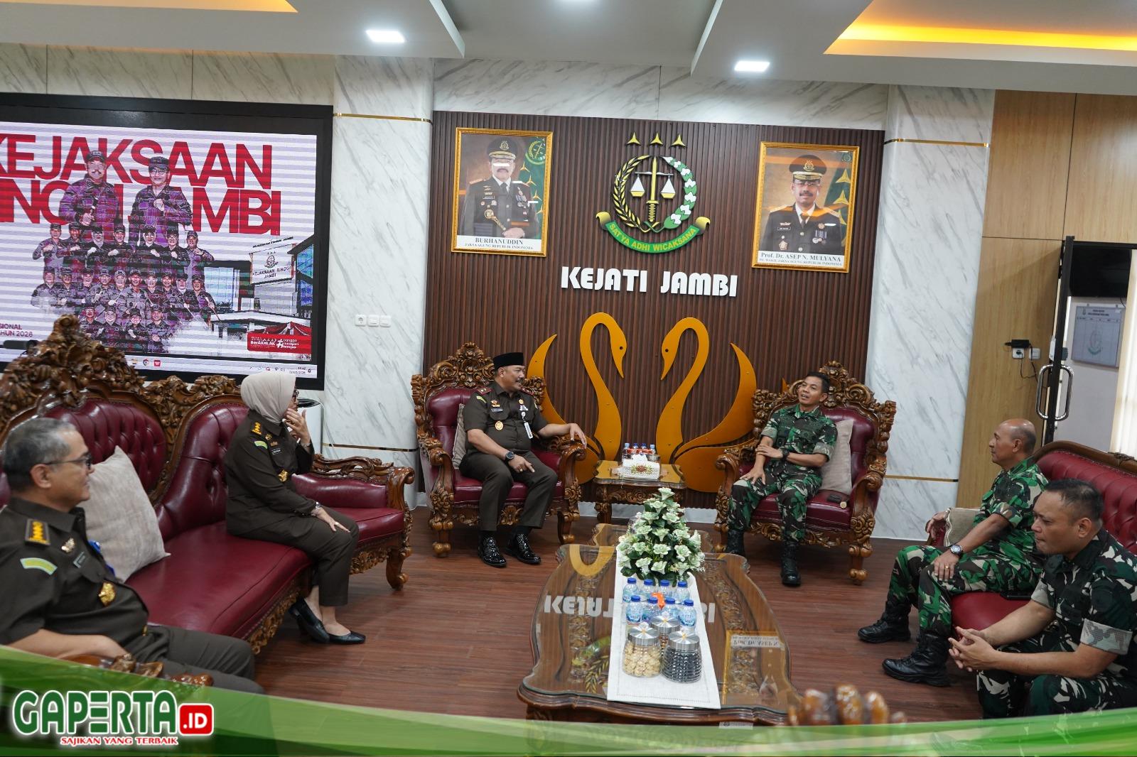 Jambi, [Gaperta.id] – Komandan Korem 042/Gapu, Kolonel Inf Nyamin S.I.P., M.M., melaksanakan silaturahmi ke Kantor Kejaksaan Tinggi Jambi, Senin (2/3/26) siang. Kunjungan tersebut diterima langsung oleh Kepala Kejaksaan Tinggi Jambi Sugeng Hariadi, S,H., M,H.,