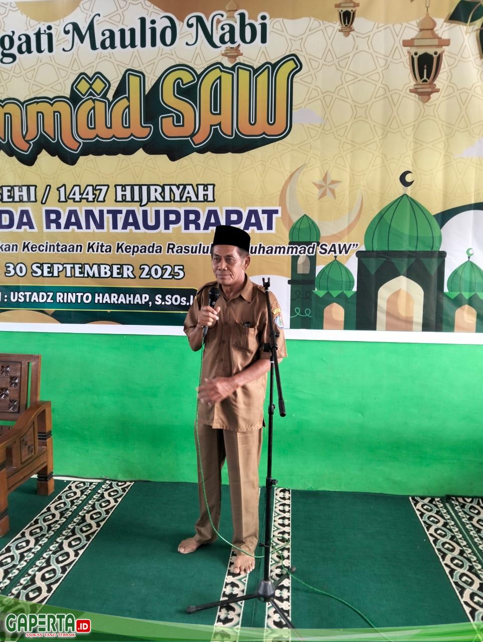 Kepala SMK Swasta Pemda Rantauprapat Drs. Bahder Johan Lumbangaol yang di wakili mengatakan, Mari kita ikuti acara maulid Nabi ini, mudah-mudahan dengan memperingati maulid ini menambah kecintaan kita kepada Baginda Rasuĺ agar meneladani sifat ahlakul karimah terutama Siddik, Amanah, Tablig dan Fathonah.