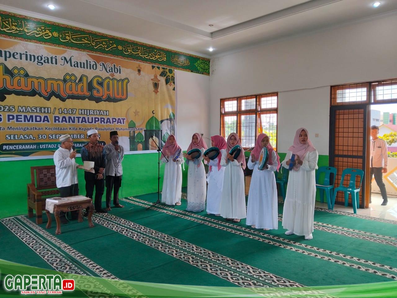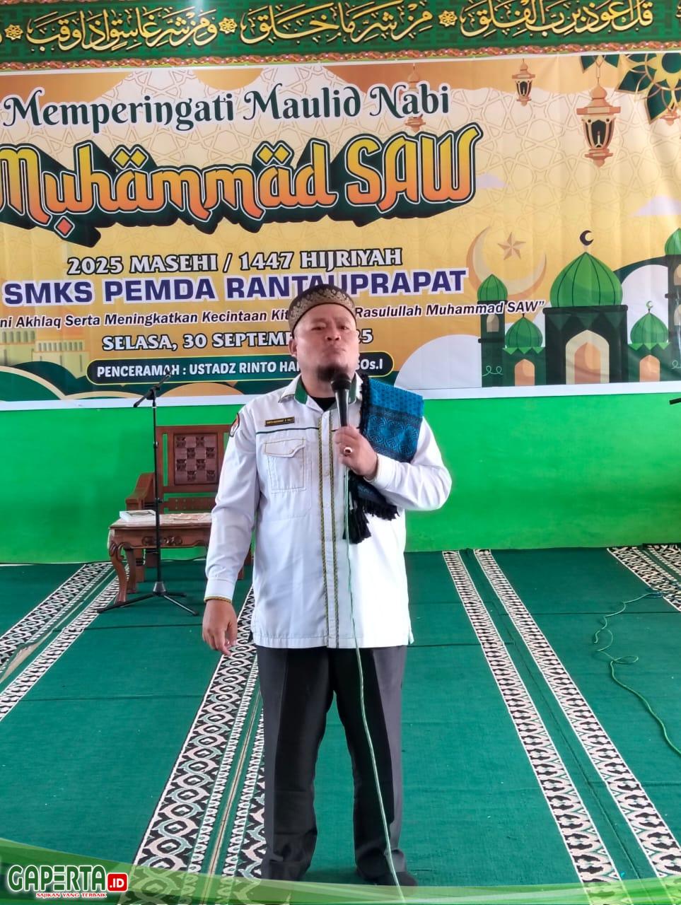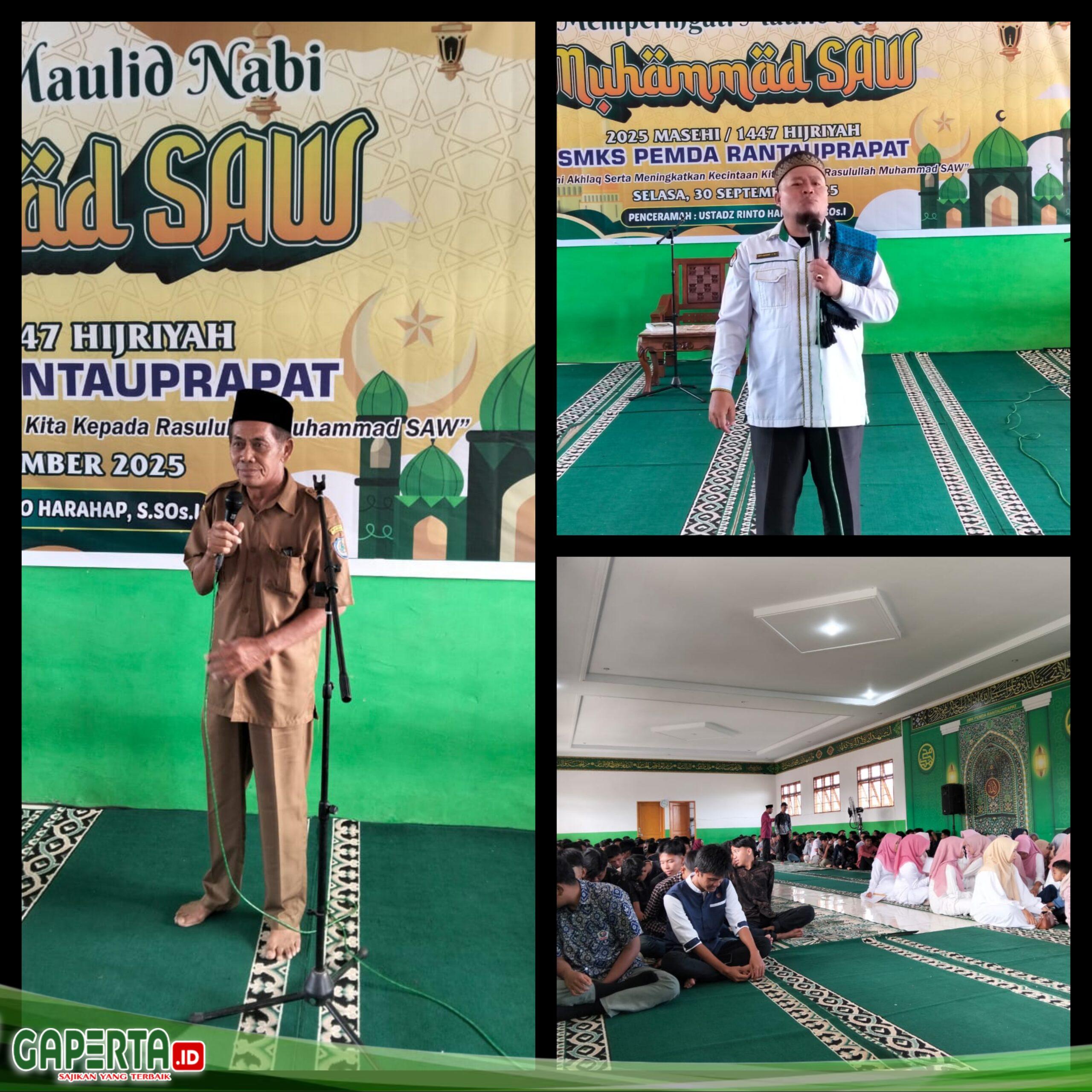 SMK Swasta Pemda Rantauprapat Peringati Maulid Nabi Muhammad SAW dengan Tema ” Meneladani Akhlaq Serta Meningkatkan Kecintaan Kita Kepada Rasullah Muhammad SAW, di Aula Sekolah SMKS Pemda Jalan K.H Dewantara No.104, Sioldengan Rantau Selatan, Labuhanbatu, Selasa (30/09/25).