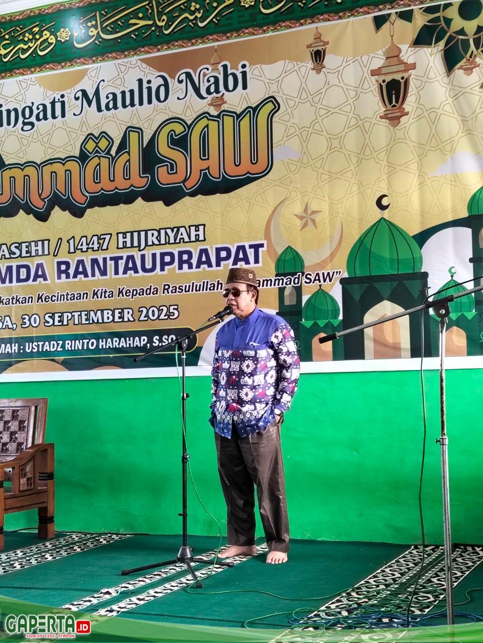 Al Ustad Rinto Harahap S.Sos.I dalam tausiahnya menyampaikan, Rasulullah Muhammad SAW diutus ke dunia untuk memperbaiki Ahklakul karimah ummat manusia.