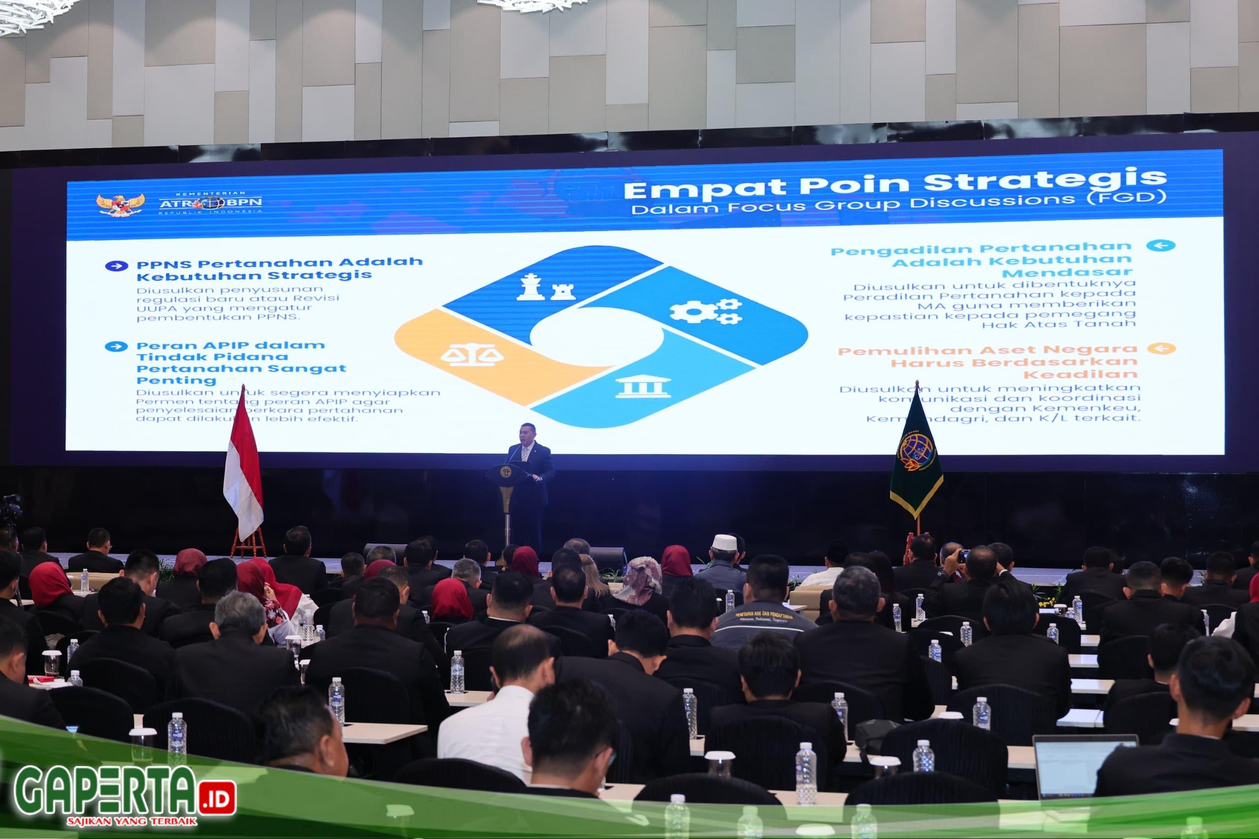 JAKARTA, [Gaperta.id] – Wakil Menteri Agraria dan Tata Ruang/Wakil Kepala Badan Pertanahan Nasional (Wamen ATR/Waka BPN), Ossy Dermawan, menegaskan pentingnya keberlanjutan dalam memperkuat langkah pencegahan dan penyelesaian tindak pidana pertanahan. Dalam penutupan Rapat Koordinasi (Rakor) Pencegahan dan Penyelesaian Tindak Pidana Pertanahan Tahun 2025, ia menyampaikan empat poin strategis yang perlu mendapat perhatian, yaitu penguatan Penyidik Pegawai Negeri Sipil (PPNS) Pertanahan, optimalisasi peran APIP, kebutuhan pembentukan pengadilan pertanahan, serta pemulihan aset negara yang berlandaskan prinsip keadilan.