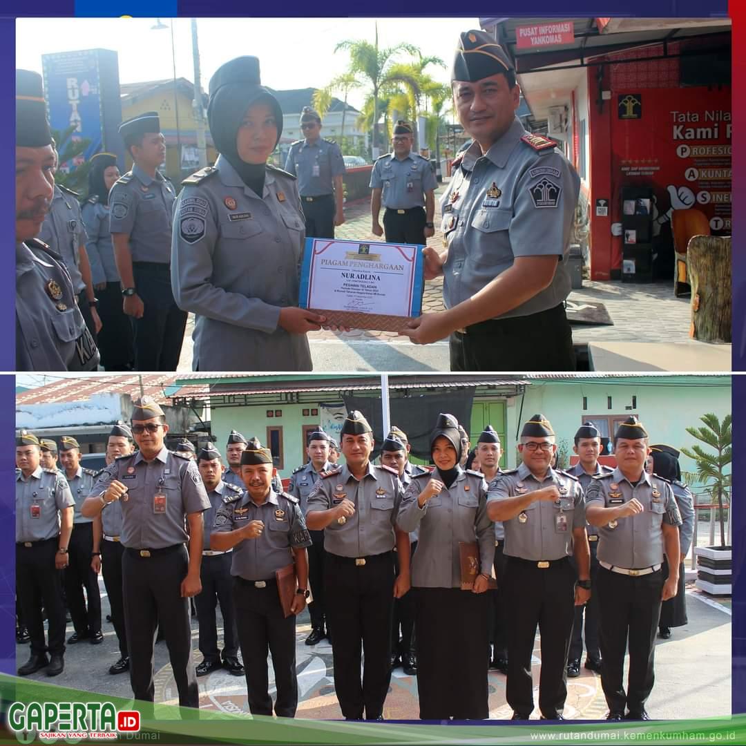 DUMAI, [Gaperta.id] – Rumah Tahanan Negara Kelas IIB Dumai rutin melaksanakan apel pagi bersama. Pada pelaksanaan apel kali ini tampak sedikit berbeda karena dilaksanakan prosesi penyerahan penghargaan bagi Petugas Rutan Dumai dengan kategori pegawai staf teladan dan petugas pengamanan teladan periode Triwulan IV Tahun 2023.