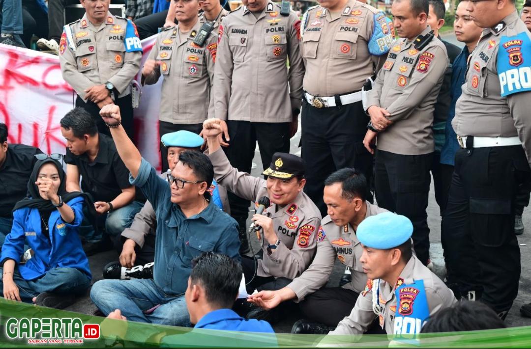 Menanggapi hal tersebut, Wakapolda Jambi bersama jajaran PJU turun langsung dan duduk bersama pendemo di jalan untuk berdialog dengan massa aksi.
