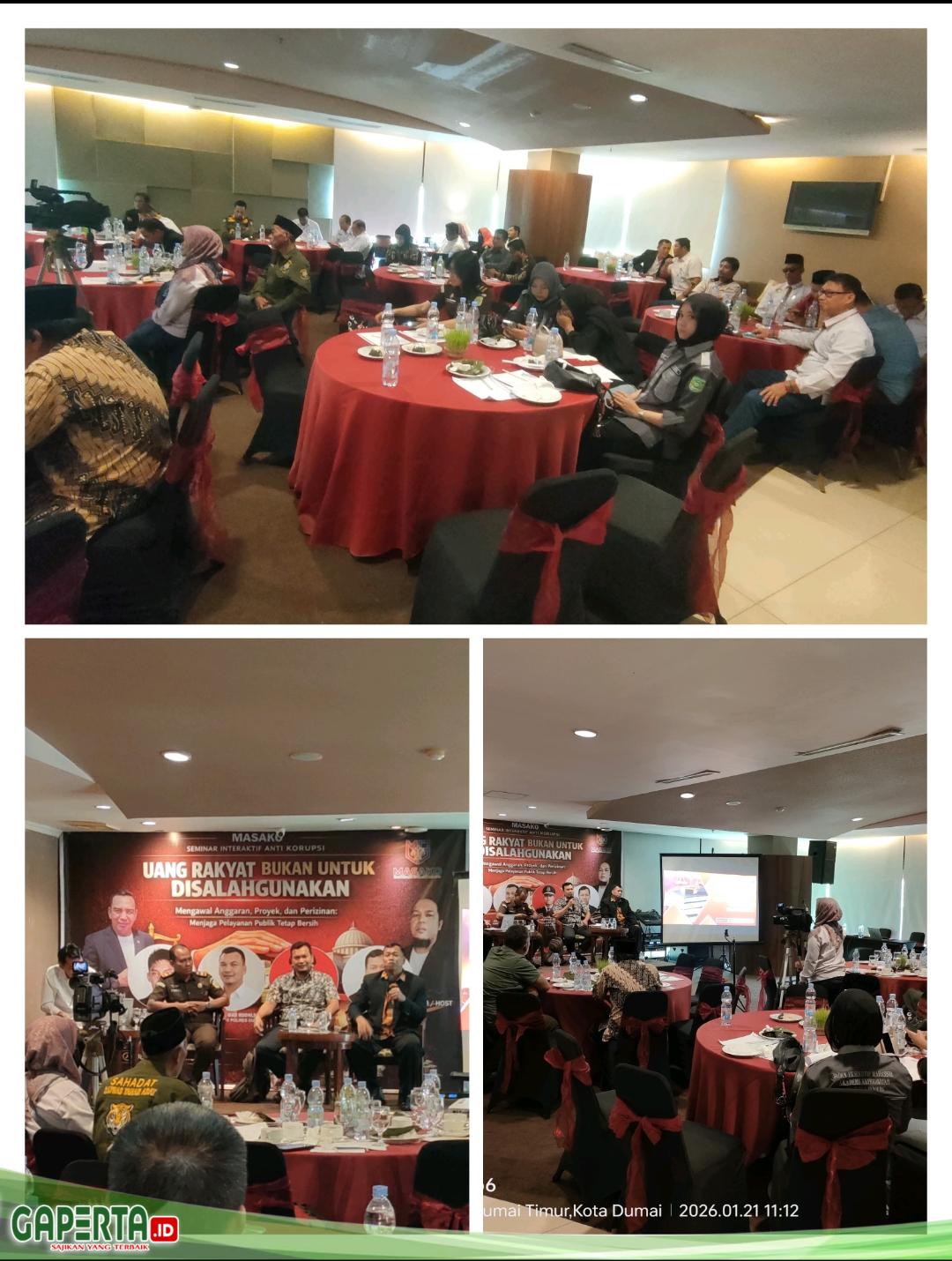 DUMAI, [Gaperta.id] — Wakil Walikota Dumai, Sugiyarto, secara resmi membuka seminar anti-korupsi yang ditaja oleh organisasi Masyarakat Sipil Anti Korupsi (Masako) dengan tema “Uang Rakyat Bukan untuk Disalahgunakan”. Dalam sambutannya, beliau menekankan bahwa integritas dan pencegahan korupsi harus dimulai dari unit terkecil masyarakat, yakni lingkungan rumah tangga.